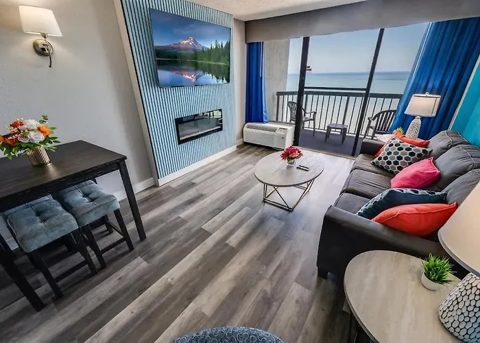 To enjoy your vacation in Myrtle Beach, stay at the beachfront 58 m² Newly Remodeled, Direct Oceanfront - Heated Pools! Apartment Myrtle Beach, which is 2.8 km from the sandy parkland "Myrtle Beach State Park" and only 13 minutes' walk from Midway Park. The apartment features a hot tub to ensure a more enjoyable stay.